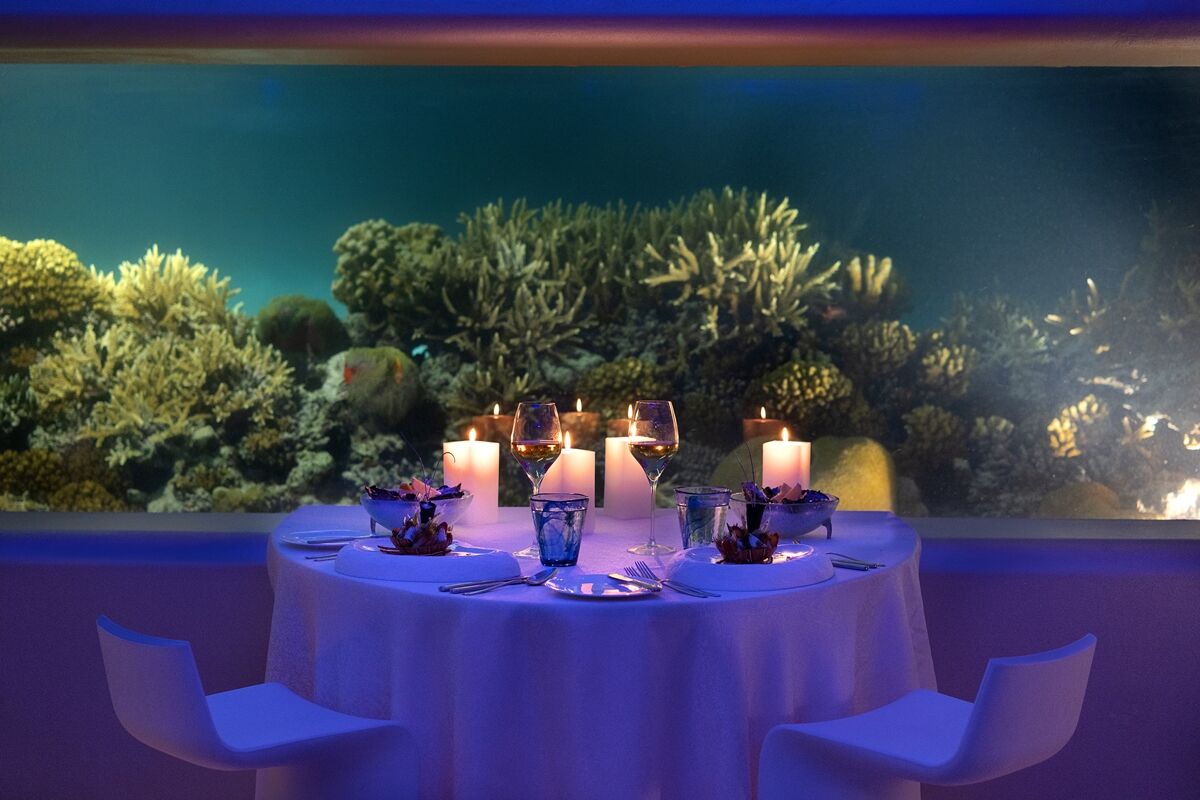 The ultimate private dining experience awaits at this one-table underwater venue. Located in a converted spa treatment room, it offers complete privacy for couples.
